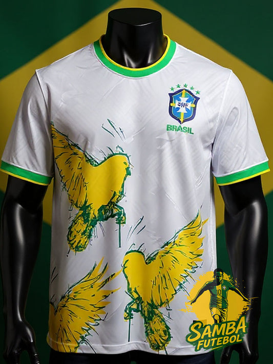 Promotion !MAILLOT DU BRÉSIL "OISEAUX" BLANC