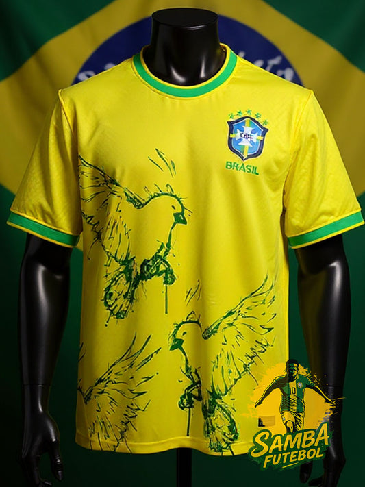 Chez Samba Futebol, nous vous proposons des maillots du Brésil conceptuels, uniques, conçus avec passion et créativité par une équipe de designers talentueux. Inspirés par la culture brésilienne, l'esthétique du football mondial, et des éléments visuels contemporains, nos maillots du Brésil sont des créations originales non portées par les équipes officielles.